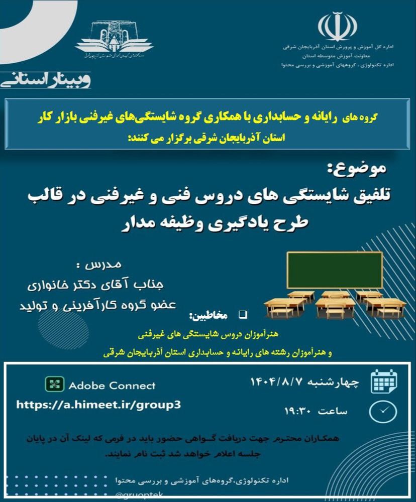 گروههای رایانه و حسابداری با همکاری گروه شایستگیهای غیرفنی بازار کار استان برگزار میکنند: